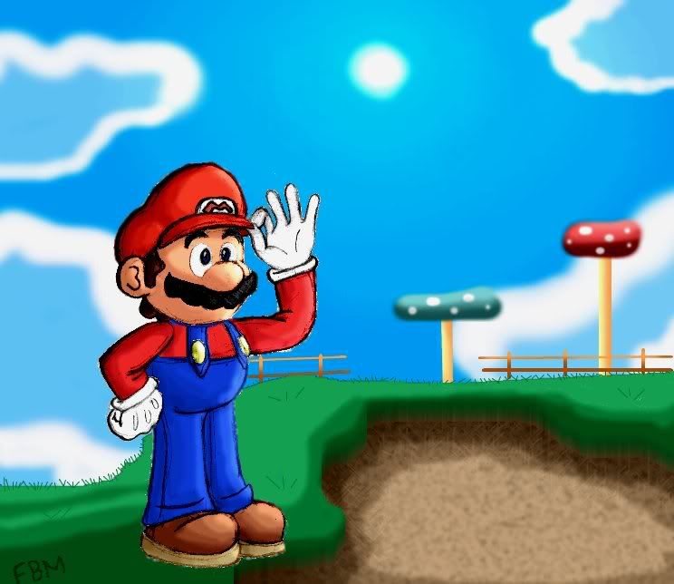 I finished this one in less than a week. Mario was drawn by hand, and the scenery and other pieces of
