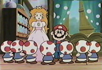 On August 3, 1989, a three-part OVA series was released in Japan featuring characters from Super Mario Bros. 3 in classic fairy tales: Momotaro, Issunboshi, and Snow White. Each of the three tapes were only 15 minutes long. The animation of the OVA seems to be much better than the anime movie released years before as the characters are based on their official designs. (This animation studio may have also done the Japanese commercial for Super Mario Bros. 3.) Here are the three stories: Momotaro