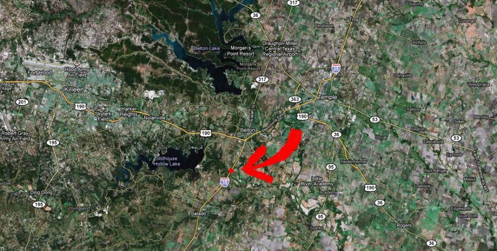 Okay, so, I was going to Salado (Texas) with my girlfriend some months back (July 18th, to be exact), and I was just looking around the highway and noticed something very interesting on the side of the road. After going to the town and coming back, I stopped on the side of the service/feeder/frontage road and took the following pictures. This was located between Salado and Belton (where I live) on Interstate 35 at a historical marker.