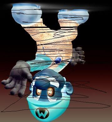 No, it's Wasquirtle. No, wait, it's that Carpenter blue dude from EarthBound. No, uh... oh, it's Mario's Final Smash in the next Smash Bros. game, where he steals Luigi's Final Smash. Harnessing his dark side from the early days when he captured Donkey Kong and threw alligators at the monkey's son, it's the Dark Zone thingy. With black scribble lines.