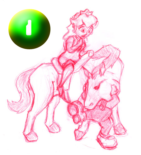 This was the only drawing that was near any kind of finished state, a proud accomplishment for Jinjo Eagle indeed. It reminds me of the Millennium Falcon escaping the exploding Death Star in Return of the Jedi. If Mario (or maybe the horse?!) was holding a light saber this would have gotten 1st place easily.