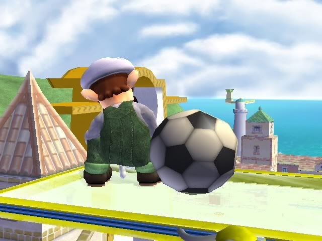 True, but a soccer ball is just about the next best thing, right? I'm actually a little more concerned about Luigi's pose, but maybe I'm just being perverted.