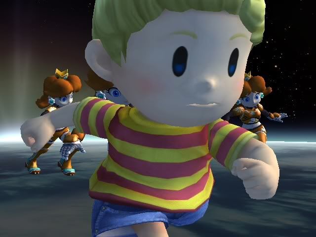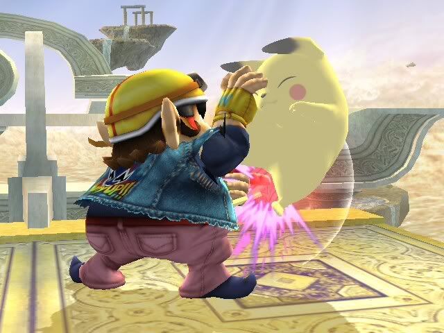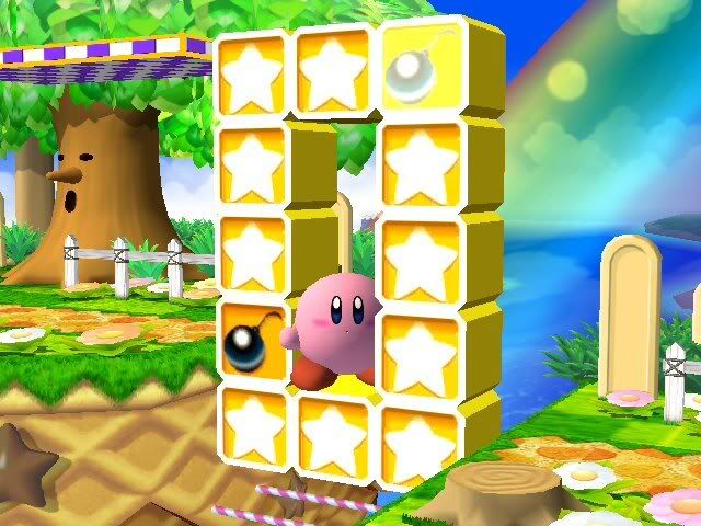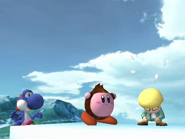 Did anyone else notice the right edge of the Pictochat stage? If you do Kirby's rock, he will constantly bounce between sliding down the slope and hitting the flat ground until his rock move is over.