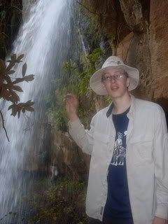 Behind an African waterfall. That gray lump in picture two is the rock.
