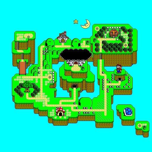 Also, I have a colorization of the overworld map (from SML2, of course). This, among other things, was a "project" I started a while back that got erased when my old comp officially had to be "put down". When I went to restart it, so to speak, the sprite sheet was a slightly different (things come and go like that on the internet) one--by someone else, I'm assuming. Anyway, credit goes to