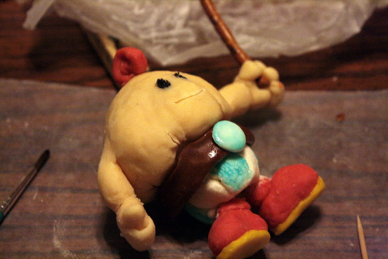 For fun, we're making a Mario cake. The cake will be shaped like one of the little castles at the end of normal levels in SMB, and will be surrounded by characters made out of edible clay. I decided to make Mallow, because I'm pretty sure I've never seen him on a Mario cake before.