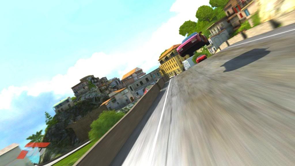 I hit that part of the road going way, waaaay too fast. Probably around 120MPH. It was cool to air out over the 911 there, though. After landing that I promptly crashed into a wall and rolled it a few times.