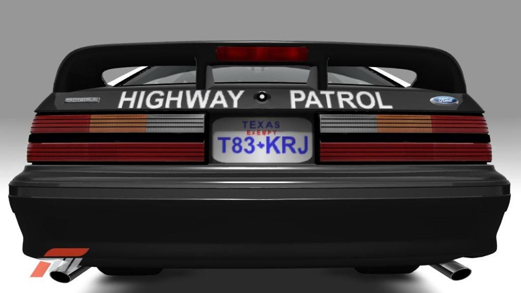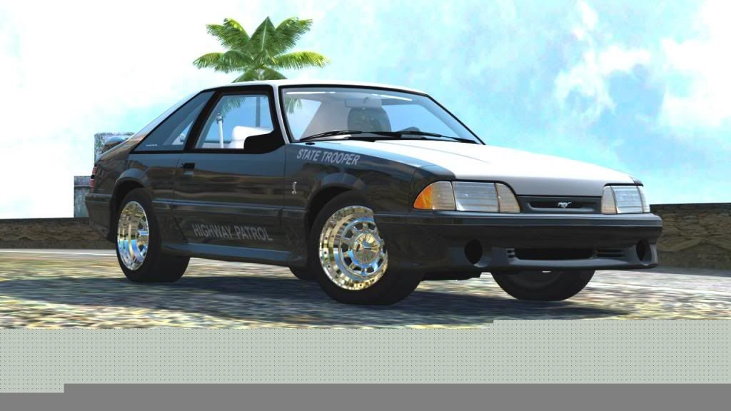 This is my Fox body Mustang state trooper car. It's not finished. Yes, there were police Mustangs back in the late 80s/early 90s. SSP Mustangs as they're called (Special Service Package). This version is based off the Texas DPS livery. (Also, that picture's all screwed up for some reason.)