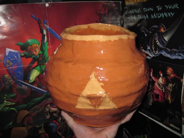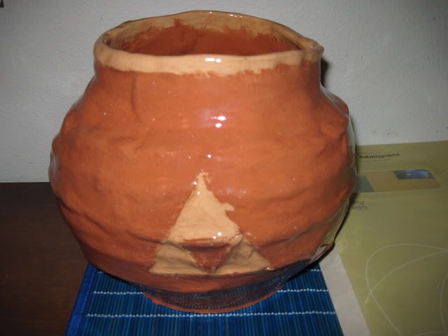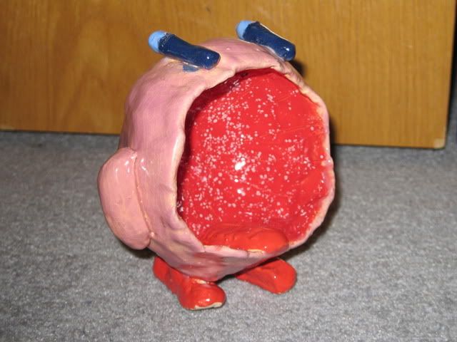 And, yeah, sorry, I forgot to explain why his mouth is so, uh, agape: We had to make a "pitch-pot creature", which is to say, we had to basically make a cross between a bowl and an animal.