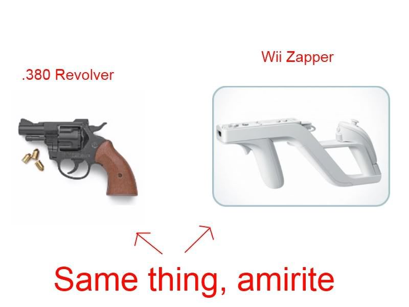 It's #2 that just kills me. How in the hell do you mistake a metallic, snub-nosed revolver for a white, large Wii Zapper? (As in, how could you not tell a real firearm from a white hunk of plastic that looks almost nothing like a firearm?)