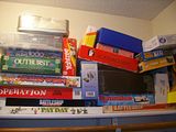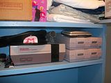 Game Boy games, original, Color, and advance. Also my e-Reader collection. You can see my GB Game Genie, and my two Game Boy Pockets, and my Virtual Boy controller landed in there. As you can see, I've been on a major Game Boy (original) spree lately. You can also see my GBA radio adapter. Horrible thing that causes bad quality, but it was free. I also still have my old Game Boy Camera.