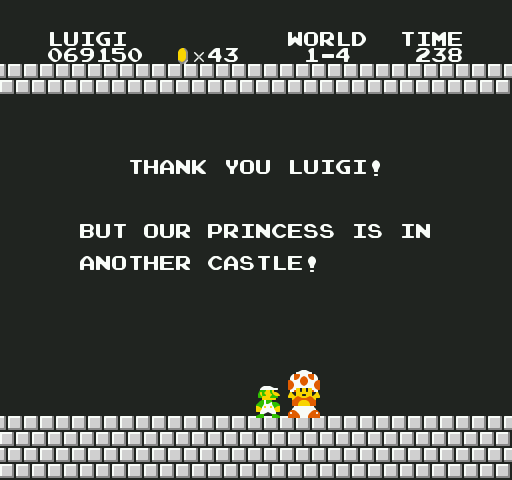 Really? Huh. Well, never mind. Maybe the ending of Super Mario World would count.