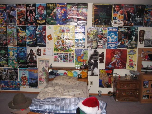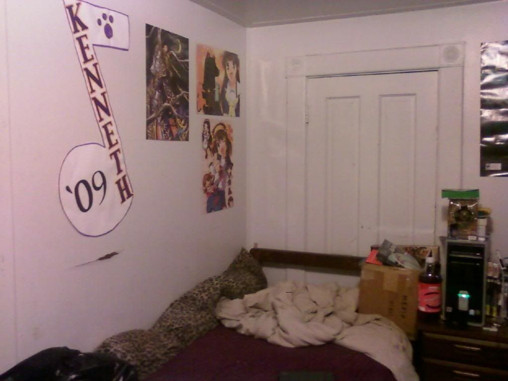 Not really much to say about this. The note on the wall is from my senior night celebration stuff, and the black things on the bed (from left) are a beanbag chair and my netbook.