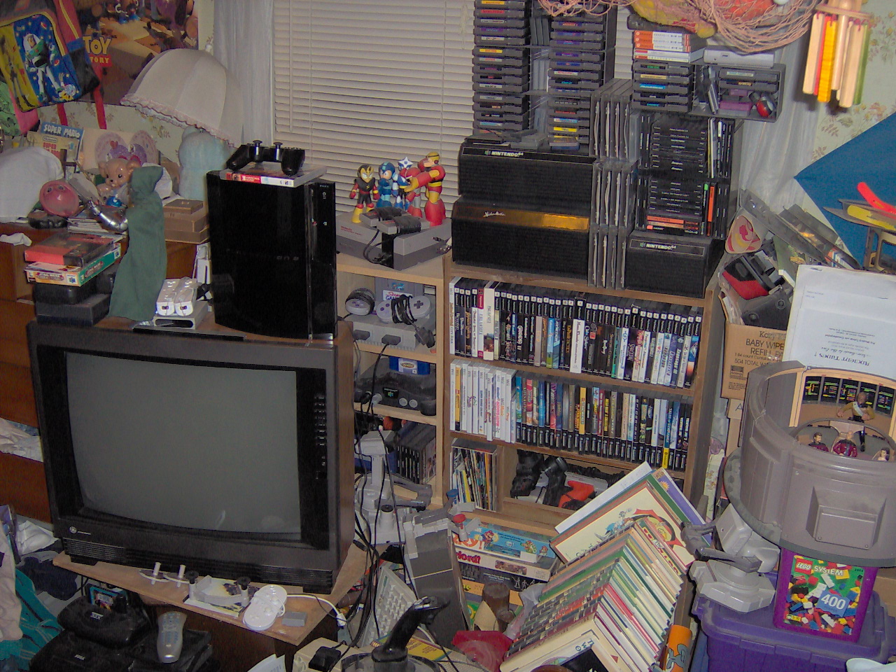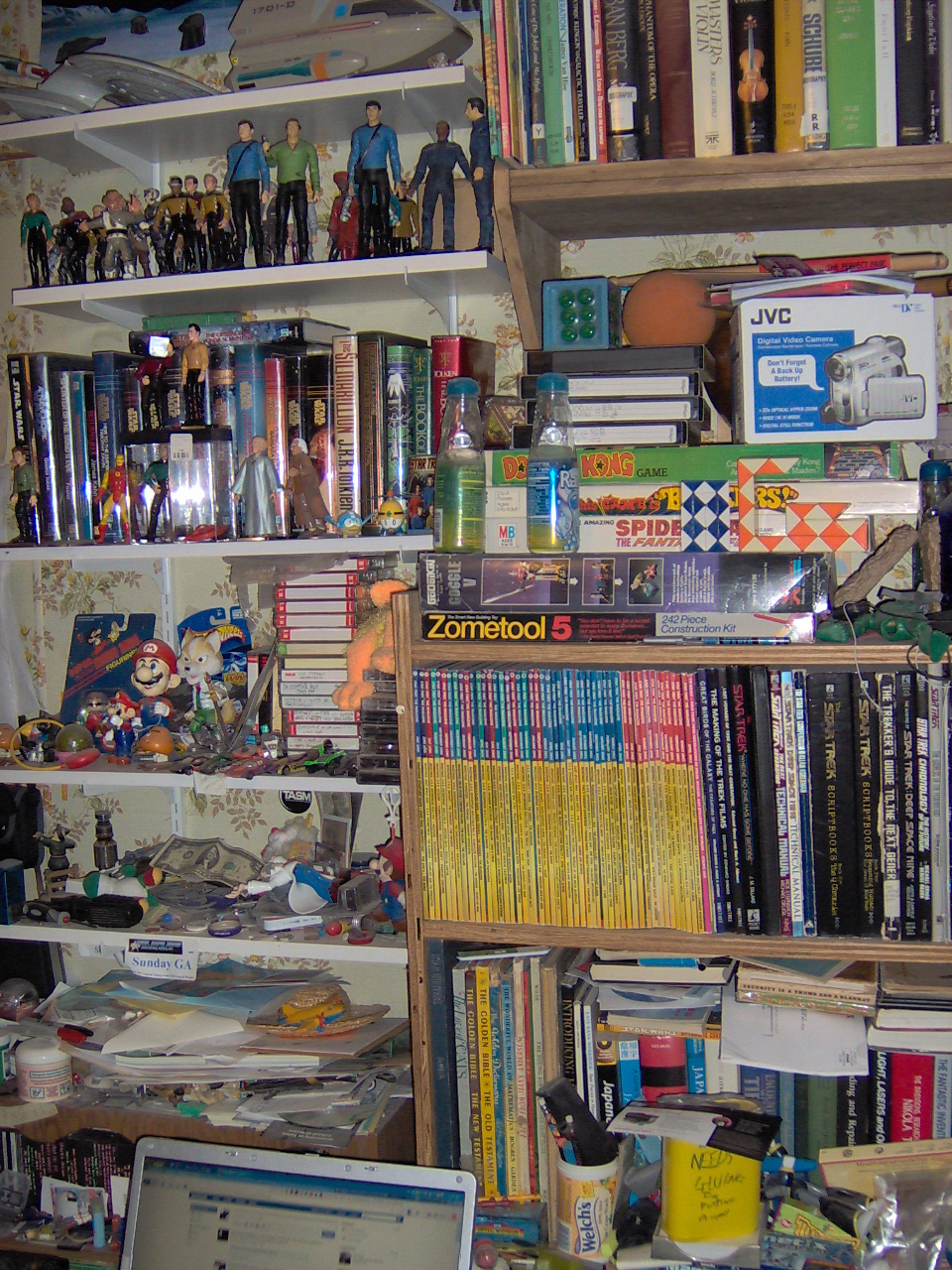 Love the parasol (or is it a lampshade?) and the Game Boy Camera, not sure about the empty box of baby wipes, and I see that you put the Windows taskbar at the top of the screen like me.
