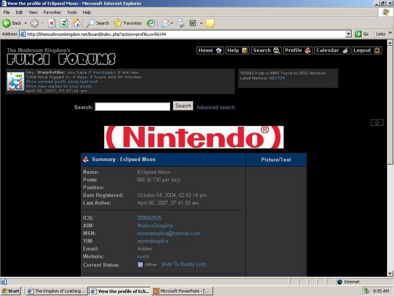 What's scarier is that you have both Kingdom of Loathing and Microsoft PowerPoint up at the same time as EM's profile. You must be, like, five Satans at once.