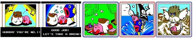 Here's a few more, colorizations of the celebratory screens from Kirby Star Stacker: