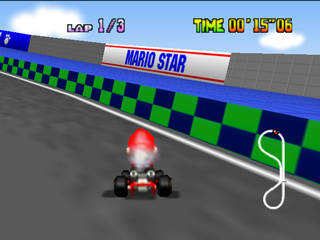 The same voice clips are played again before the credits sequence, when no background music is playing. You can hear the BGM-free versions on our Mario Kart 64 sound clips page. AnnouncerBoth versions have an announcer who helps guide you through the pre-game setup screens. The difference is that the Japanese version has a very American-sounding announcer with a voice that echoes, while Mario lends his voice to the U.S. version. Check out the MP3s below for a comparison.
